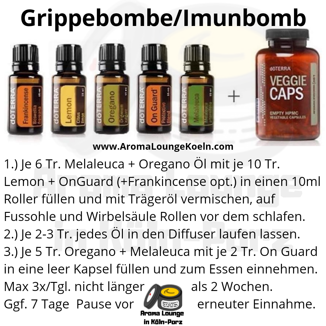 Diese Produkte dienen nicht zur Diagnose oder Behandlung von Krankheiten und ersetzen keine ärztliche Beratung. Informationen über die Öle & Produkte von doTERRA beruhen auf allgemein bekannten Wirkungsweisen von Ölen und reinen Essenzen. Es gibt dennoch viele englische Studien die die Wirkkraft ätherische Öle Belegen. Testen Sie jedes Öl erst an einer kleinen Hautstelle bevor sie es wie von doTERRA vorgegeben einsetzen, um unerwünschte Hautreaktionen auszuschliessen. Keinerlei Haftung für fehl Anwendung auch durch verwendung anderer Marken.
