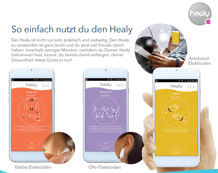 | DIE RICHTIGE FREQUENZ – DAS TOOL ZUR BEGLEITENDEN BEHANDLUNG Hinweis: In der Europäischen Union ist Healy ein Medizinprodukt zur Schmerzbehandlung bei chronischen Schmerzen, Fibromyalgie, Skelettschmerzen und Migräne sowie zur unterstützenden Behandlung bei psychischen Erkrankungen wie Depressionen, Angstzuständen und damit verbundenen Schlafstörungen. Alle anderen Anwendungen des Healy erkennt die Schulmedizin aufgrund fehlender Nachweise im Sinne der Schulmedizin nicht an. |
